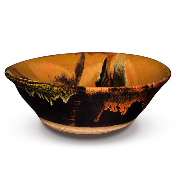 Hover Over for Zoom View. This is a wheel-thown stoneware bowl glazed in our Little Missouri color combination. It gets its name from the ribbon of blue that meanders along the center. A colorful piece like this would be wonderful addition to your room decor. Or, you could put it work as a serving bowl at your next dinner party. That makes it both decorative and functional. It is microwavable, lead-free, and food & dishwasher-safe.